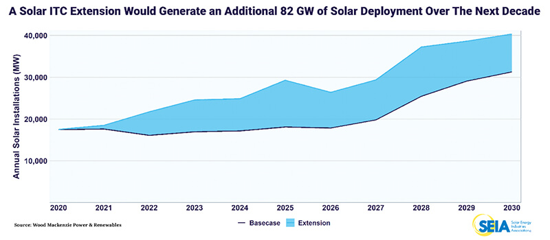 今年6月にカリフォルニア、ハワイ、ニューヨーク州などを代表する20人の民主党上院議員は、気候変動の激化を防ぐため、そして24万人の太陽光発電産業の雇用を守るために上院総務にITCの延長を申し立てた。これらの上院議員を支持するため、SEIAの社長兼最高経営責任者を務めるアビゲイル・ホッパー氏は、 「気候変動に対処する包括的な法律が制定されるまで、ITCはクリーンエネルギー導入を推進するための最強の政策である。ITCは今まで何十万もの雇用を生み出し、1400億ドルを超える民間投資を経済に投入した」と 議会にITCの延長をするように強く主張した。