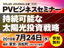 第14回PVビジネスセミナー、7月24日(水)開催決定! 再エネ投資の最新トレンドや自家消費モデル構築のヒントを手に入れよう!