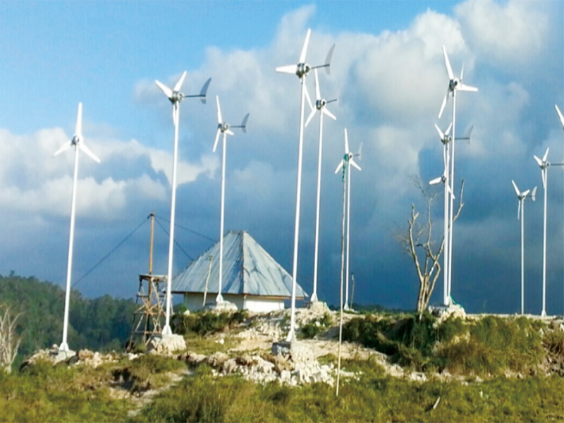 インドネシア・スンバ島の小型風車プロジェクト。無償化地域の電源として、小型風力発電が活かされている。
