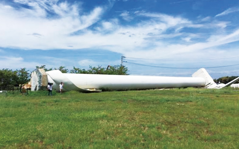 台風20号によって倒壊した淡路島の風車