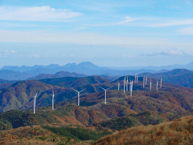 稜線に連なる美しい風車群。6月に営業運転を開始した「ウインドファーム浜田」(島根県浜田市)だ。ソフトバンググループのSBエナジーと、三井物産が共同出資する特別目的会社「株式会社グリーンパワー浜田」が運営する。
