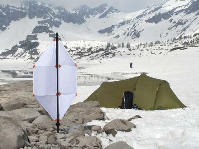 そして、持ち味は手軽さだけではない。シンプルなデザインの発電部分はサボニウスタービンを使用し、いかなるロケーションや風速でも対応できる製品に仕上がっている。特に、不安定で激しい風の中での使用に最適であり、セイルは全方向からの風を捕まえられるのも、魅力的な部分の一つである。現在のデザインは、風速18㎞/hで5ワットの発電が可能であり、屋外活動での可能性が広がるものになっている。
