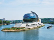 パリのセーヌ川に連なる中州。その仲間に加わった、『ラ・セーヌ・ミュージカル』は、日本人建築家が設計した。注目すべきは、太陽光発電システムを導入しているところだ。